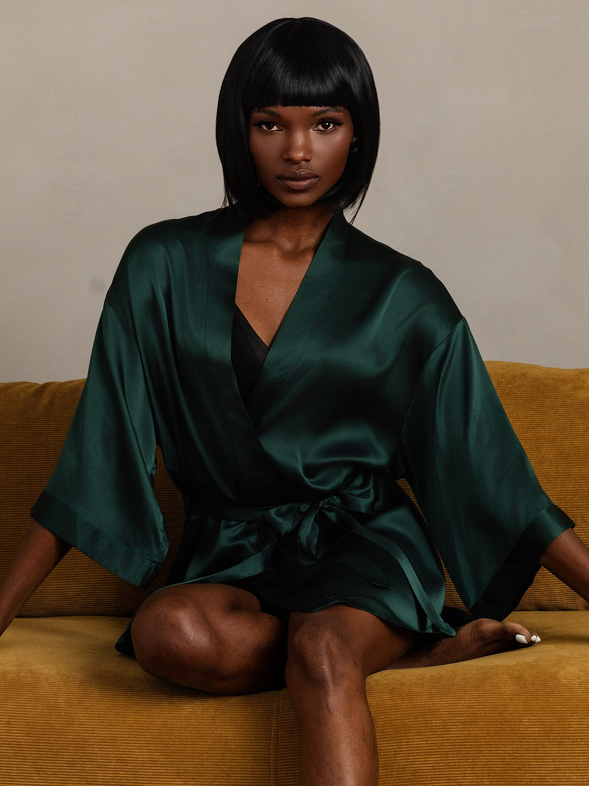 Details: Our women's silk robe stands out with its pure simplicity in solid colors. The deep V-neck design perfectly blends sensuality and elegance, adding a touch of charm to your evenings. Enjoy the luxurious feel of lightweight pure silk, making this silk dress pajamas the perfect symbol of taste and comfort.